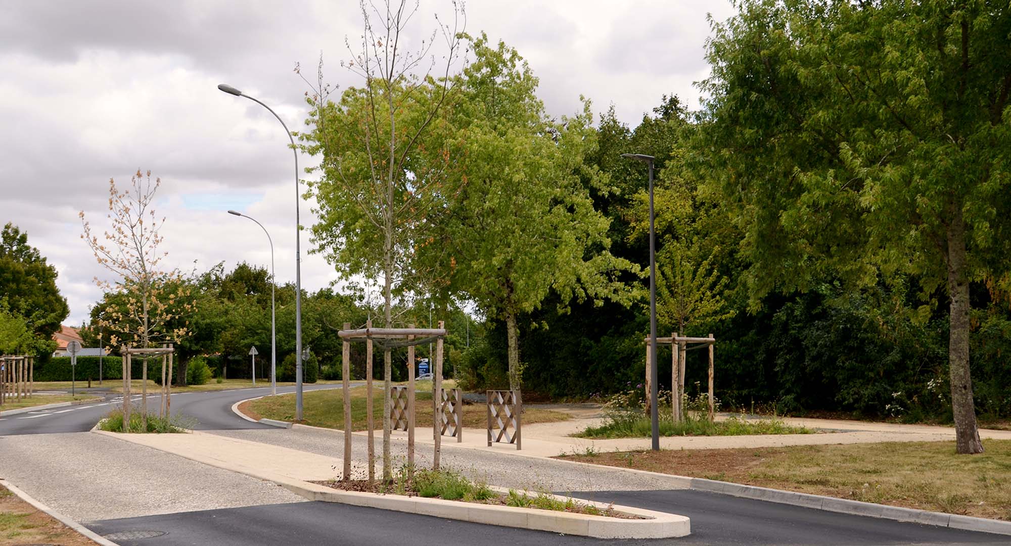 Il est souhaité sur ce projet une prise en compte des préoccupations environnementales. Un travail fin sur la nécessaire place de la nature en ville avec la gestion aérienne et optimisée des eaux pluviales comprenant la limitation de l’imperméabilisation mais aussi la désimperméabilisation de surface trop vaste en enrobé et la gestion différenciée ont guidé notre travail de conception tout au long de ce projet d’ampleur.